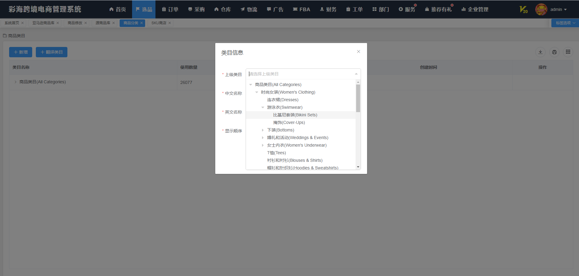 类目管理功能增删改查,手工标记分类特殊商品,